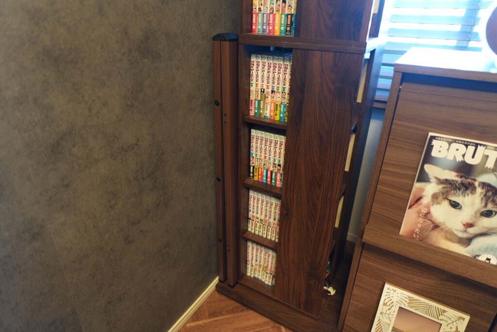 木目アイテムはウォールナット系の色味で揃えているので、ちょっと床の色が合っていないのが気になっていたのですが、統一感のある空間になり非常に満足しています。