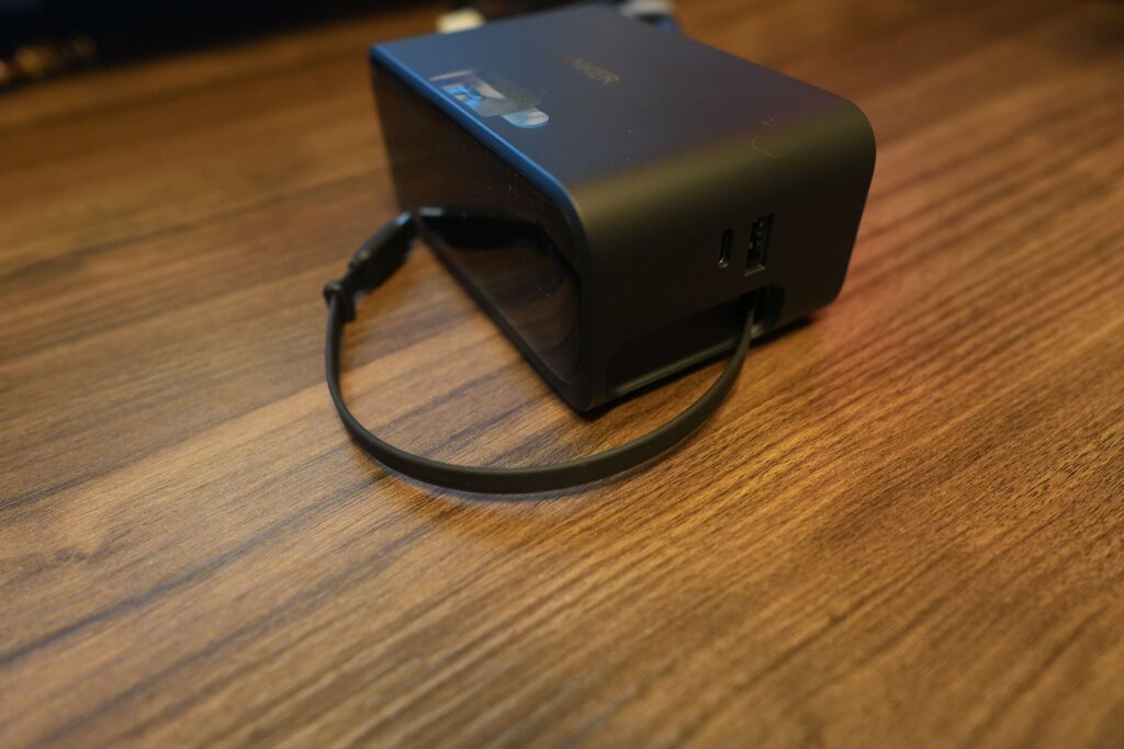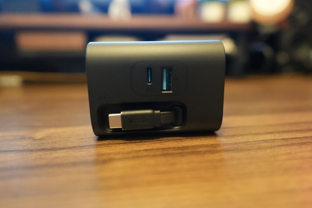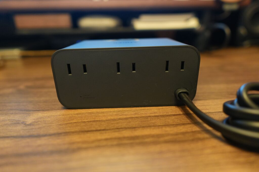 巻き取り式のUSB-Cケーブル以外にも、USB-CとUSB-Aポートが1つずつ、AC差込口が3つもあるため、デスク上の充電はこれ1台で充分賄えるという方も多いかと思います。