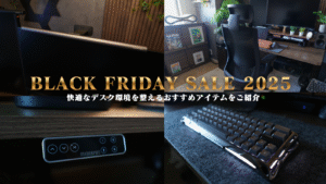 今回は、快適なデスク環境を作る上で個人的におすすめな、ブラックフライデーセールの対象となっている商品をまとめてみました。