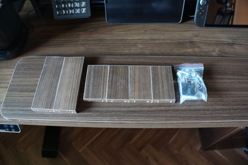 FlexiSpotのグレイウッドカラーのデスク天板と色を合わせたデスクシェルフが欲しいという方は、おそらく現状この製品一択だと思うので、是非試してみてほしいです。色は完璧に一緒です…!