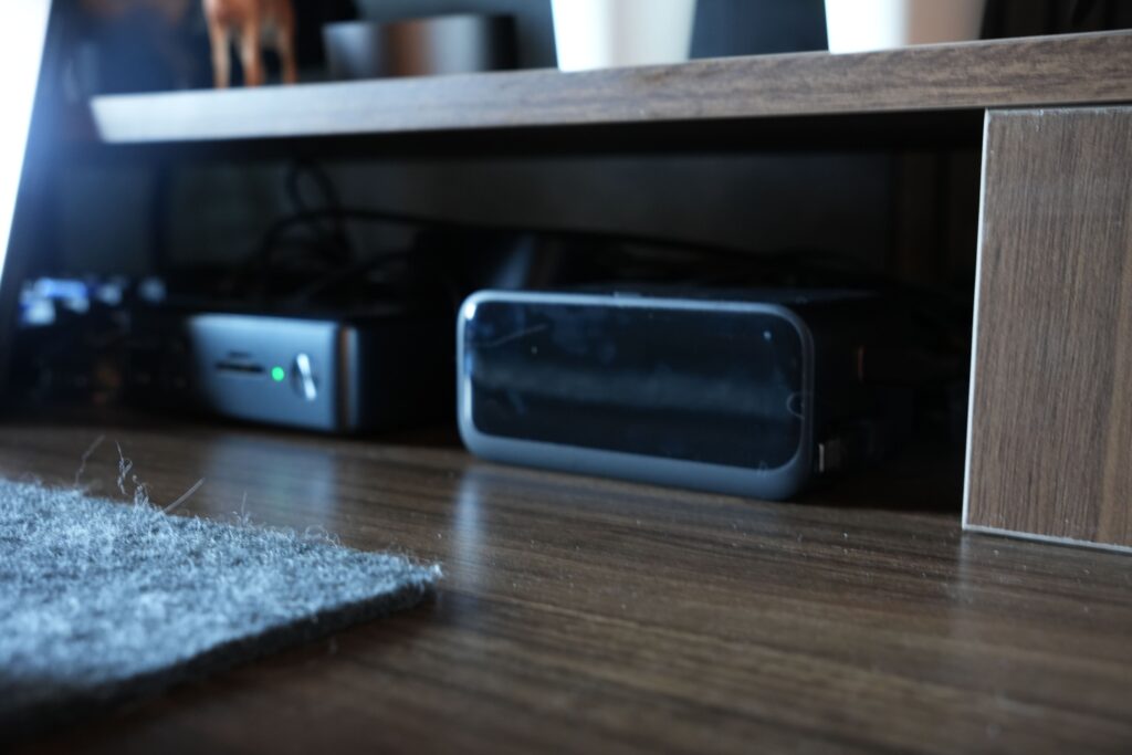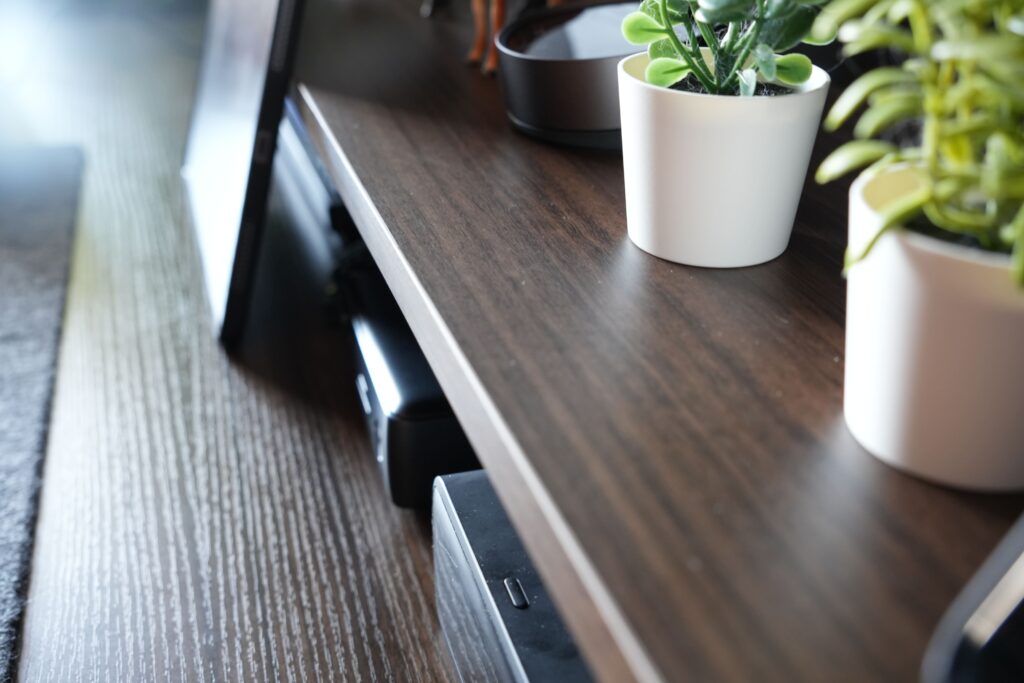 下に物を収納したりケーブルを隠すことができますし、上に物を置くこともできます。