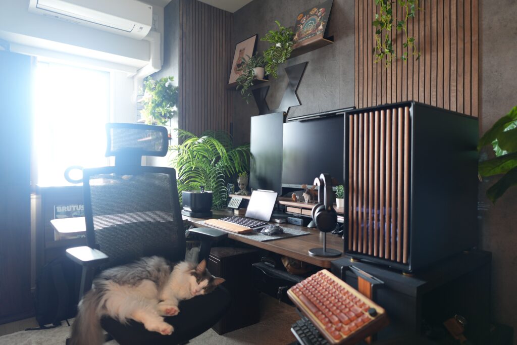 【書斎ツアー】木目×緑×猫の癒し空間|自然を意識した落ち着く雰囲気の書斎をご紹介 テレワークメインで働く会社員の私が、引っ越しを機にゼロから書斎作りを始めて約1年。ある程度理想の環境が完成したので、デスク中心の書斎ツアーとしてまとめてみました。 書斎作りをされている方や、デスク環境を整えている方の参考になれば幸いです。