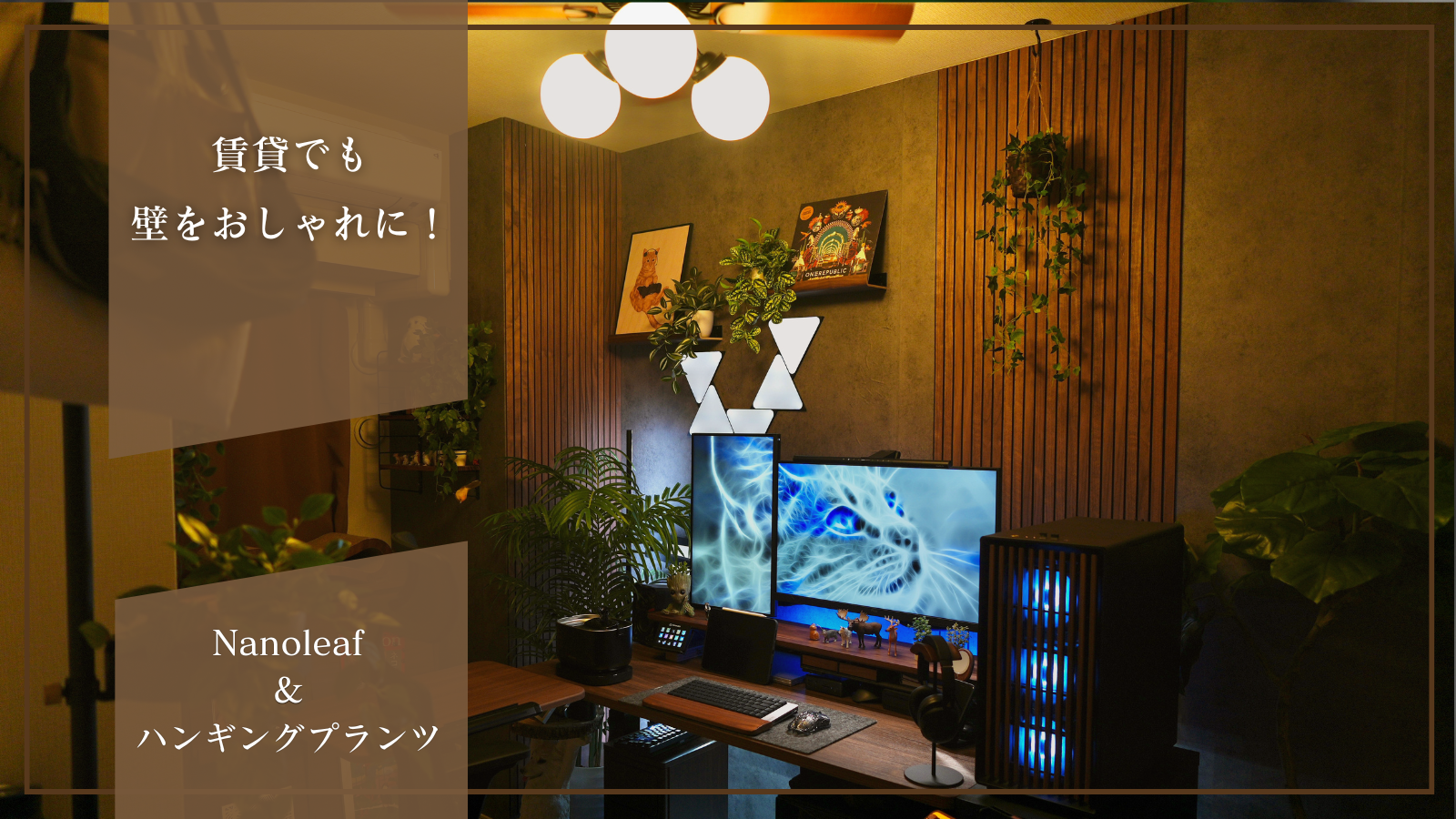 デスクシェルフ賃貸でも壁をおしゃれに!Nanoleaf&ハンギングプランツを設置