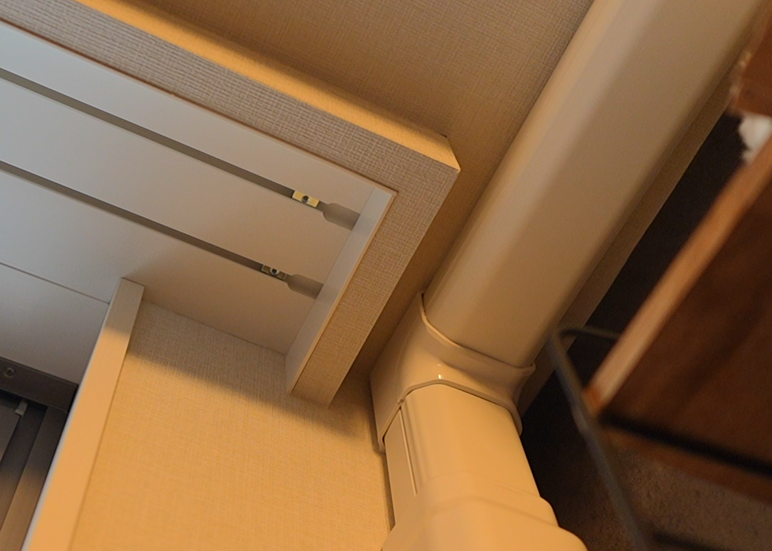 こんな感じで、カーテンレールに取り付けられるので穴をあける必要がなく、賃貸でも設置可能となっています。
