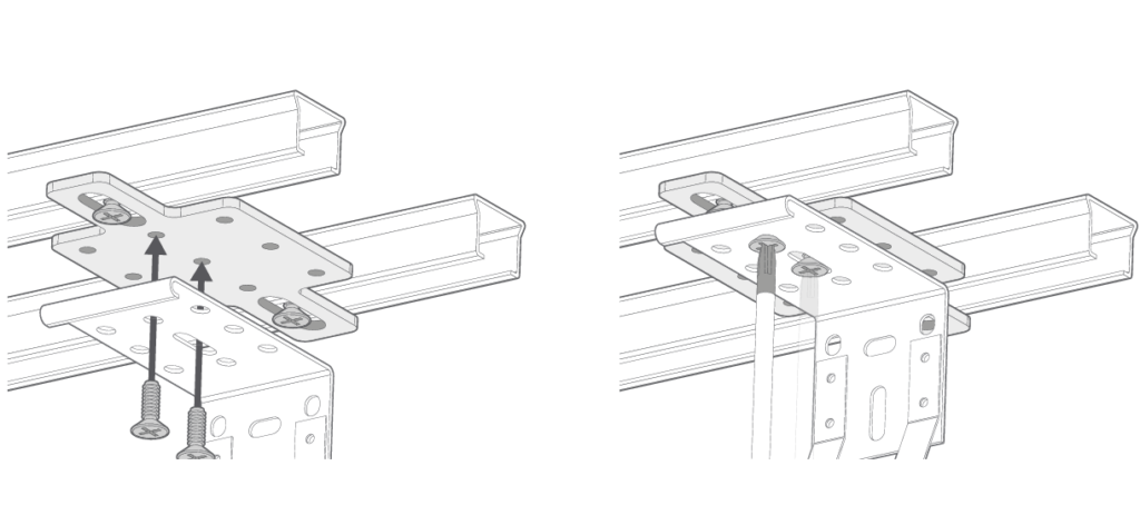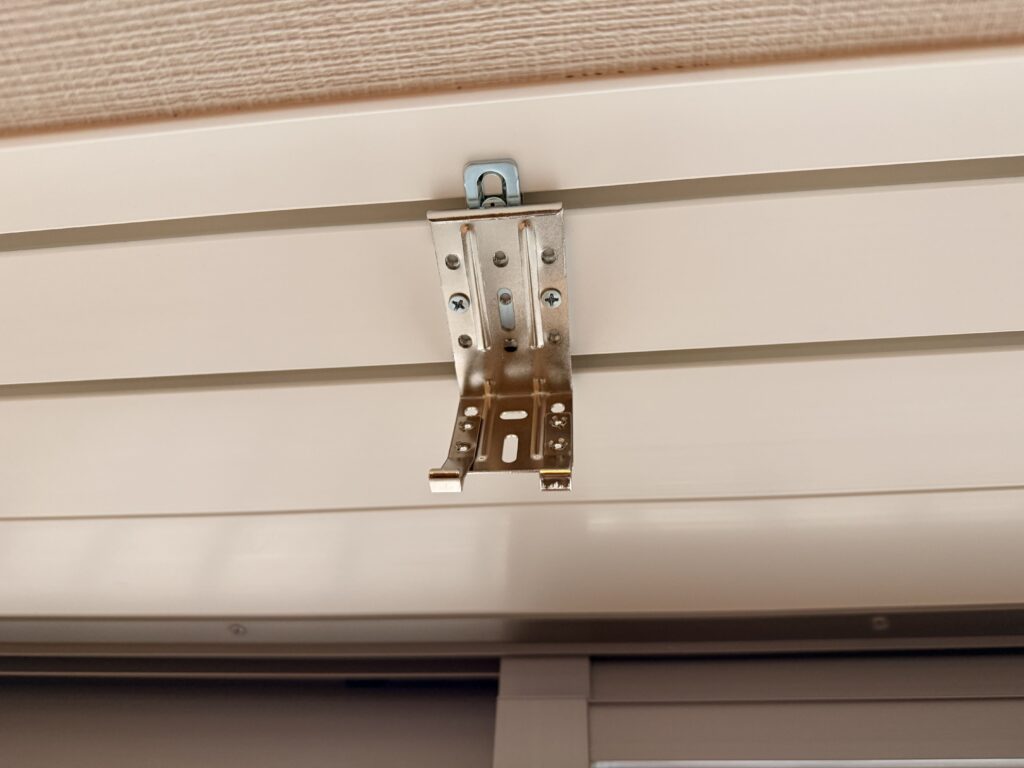 先ほど取り付けたカーテンレール取り付け金具に、こちらのブラケットをネジで取り付けていきます。