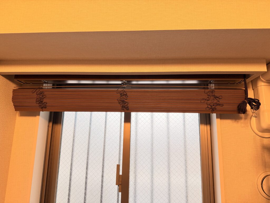 ということで、泣く泣く穴をあけて取り付けたウッドブラインドがこちらです。